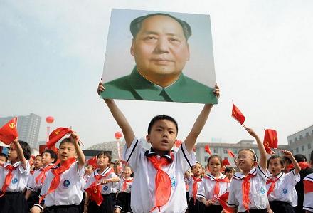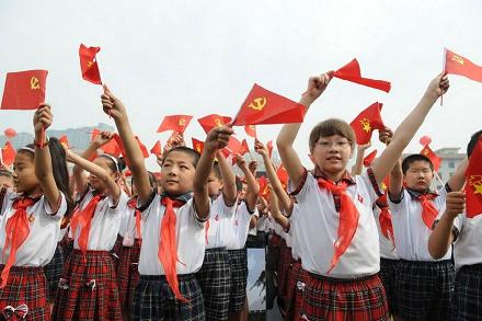 慶六一,小學生手舉紅旗參加活動