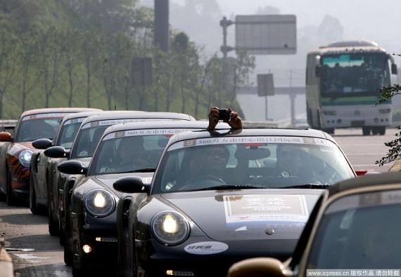 香港30輛保時捷組成車隊 駛入重慶引圍觀